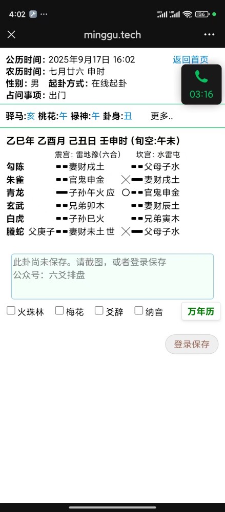 世爻在初爻,是骑行刚开始的阶段,世爻下伏藏的父母就是卦主要骑的自行车,临腾蛇,可以代表骑行的道路。世爻被应爻合,丑日冲开了世应之间的合绊,是卦主要动身的征兆。世爻化出子水被日合绊,可能是骑行途中会有阻碍,应爻的青龙子孙是世爻元神,也是卦主要完成的目标,应爻自化病地,骑行途中会出问题,世爻化出子水又冲午火,恐怕事与愿违,目标难以实现。五爻官鬼回头生,又得通关来生,去合二爻,克三爻,应该是骑到第二条路线时会出现阻碍,难以前行。三爻可以是第三条路线,月破被申金发动来克,又临玄武,骑行途中暗藏危机。结合背景路线难度递增,卦中出现丑未戌三刑,也是有阻碍,难受的象,世爻被日冲长期也是破,病还是会影响到卦主,骑行途中有阻碍,要完成目标还是很难的。